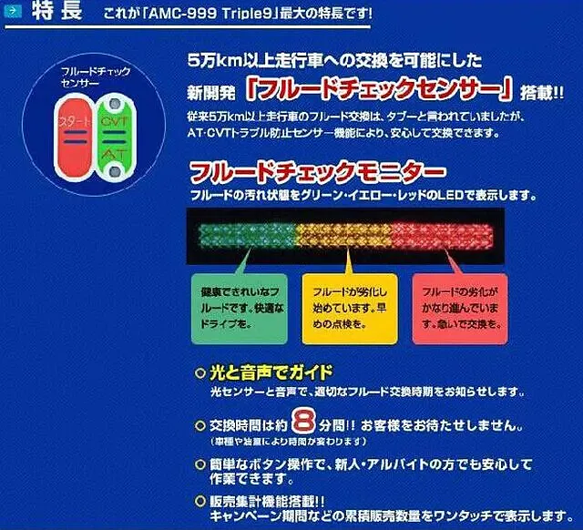 当社のトルコンチェンジャー999(トリプル・ナイン)は、オートマチックオイルの汚れや劣化具合をコンピュータ診断でき、オイル交換自体が可能か?またはどれくらいの料金がかかるのかを診断すことができるのです。